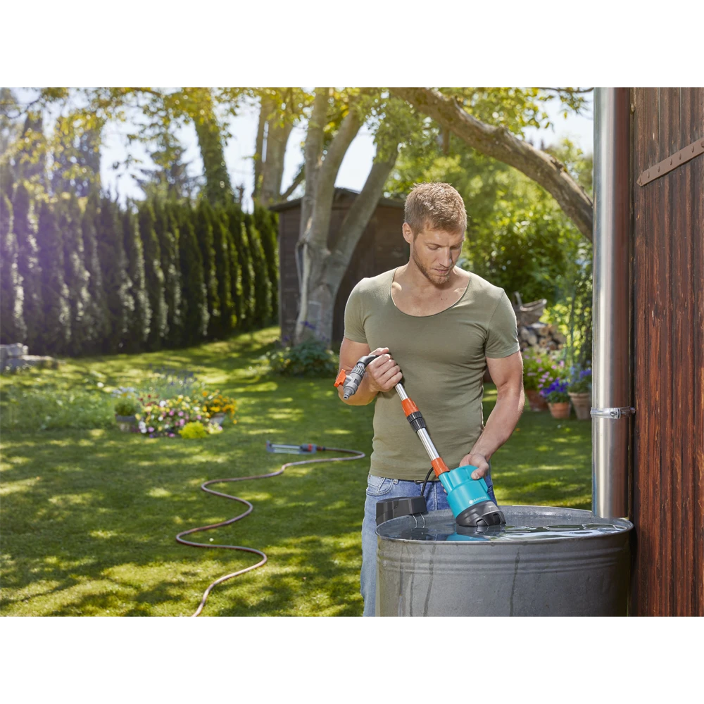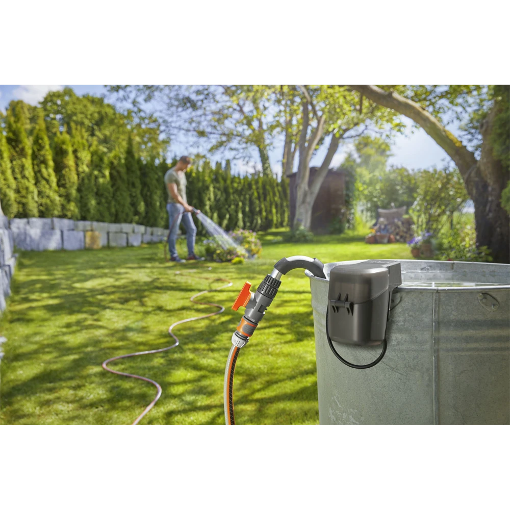 Dankzij de Accu Regentonpomp 2000/2 Li-18 kan regenwater zonder kosten uit de regenton worden gebruikt om de tuin te besproeien met GARDENA sproeiers of spuitpistolen. Op iedere plek waar zich een regenton bevindt is de pomp absoluut flexibel te gebruiken dankzij de lithium-ionaccu. De pomp is ook geschikt voor aftapdoeleinden. De set bevat een accu en oplader. De universele regentonpomp wordt aangedreven door een gemakkelijk te onderhouden GARDENA systeemaccu met 18 V. Deze kan op elk moment worden opgeladen zonder geheugeneffect.