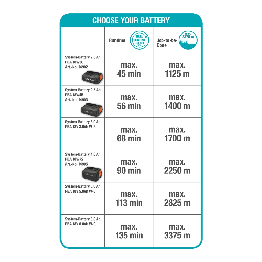 Gemakkelijk en snoerloos gazon trimmen: de accutrimmer EasyCut 23 / 18V P4A maakt het mogelijk om uw gazon in vorm te krijgen. Zelfs op plaatsen die meestal moeilijk te bereiken zijn! De EasyCut 23 / 18V P4A is erg licht van gewicht, waardoor het gebruik van het apparaat comfortabel is. Je kunt de snoerloze trimmer langdurig gebruiken zonder je moe te voelen.De Trimmer EasyCut 23 / 18V P4A is compatibel met alle accu’s van de 18V FOR ALL ALLIANCE. Afhankelijk van de gebruikte accu kan het product een maximale gebruiksduur bereiken van 135 minuten en tot 3375 m gazonrand per acculading snijden.Na een snelle en gemakkelijke montage is de EasyCut 23 / 18V P4A direct inzetbaar. Pas voordat u begint de snoerloze trimmer eenvoudig aan uw behoeften aan – zowel de handgreep is verstelbaar als de telescopische steel. Op deze manier kunt u tijdens het trimmen een rechte en ontspannen houding aanhouden.Wilt u onder obstakels door snijden? Kantel dan eenvoudig de kop van de trimmer. Tijdens het gebruik van de trimmer is de oplaadstatus altijd zichtbaar op de led-batterijstatusindicator in het handvat. Maakt u zich geen zorgen over planten die in een bloembed aan de rand van het gazon groeien. De uittrekbare en afneembare plantbeschermer houdt uw bloemen en struiken goed beschermd.De GARDENA Accutrimmer EasyCut 23 / 18V P4A solo wordt geleverd zonder accu en oplader. Hij is compatibel met alle 18V-accu’s van de POWER FOR ALL ALLIANCE, een van de grootste accu-allianties van meerdere merken van toonaangevende fabrikanten. Deze accu’s kunnen worden gebruikt voor tal van apparaten in huis en tuin. U bespaart dus geld en blijft flexibel! Passie aangedreven door GARDENA – Tuingereedschap op accu dat u de vrijheid geeft om te creëren.