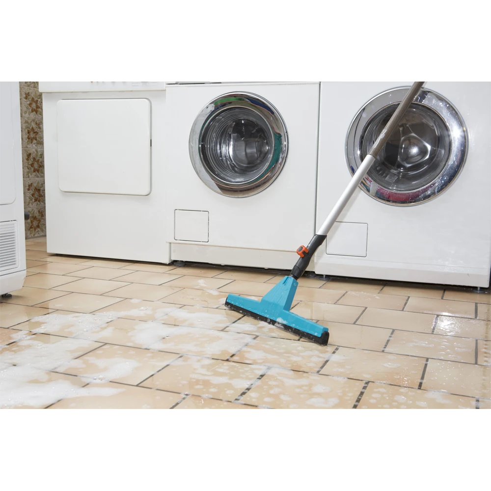 De GARDENA combisystem-vloerentrekker is uitstekend geschikt om snel en gemakkelijk water van stenen vloeren of gladde oppervlakken weg te schuiven. Voor efficiënt werken en optimale reinigingsresultaten heeft hij een duurzame celrubberen strip over de hele werkbreedte van 43 cm. Dankzij de oersterke kop van hoogwaardige kunststof is de vloerentrekker robuust en bestand tegen beschadigingen. De vloerentrekker is geschikt voor alle stelen van het GARDENA combisystem, waarbij GARDENA een steellengte van 130 of 150 cm adviseert, afhankelijk van uw lichaamslengte. De garantieperiode is 25 jaar.