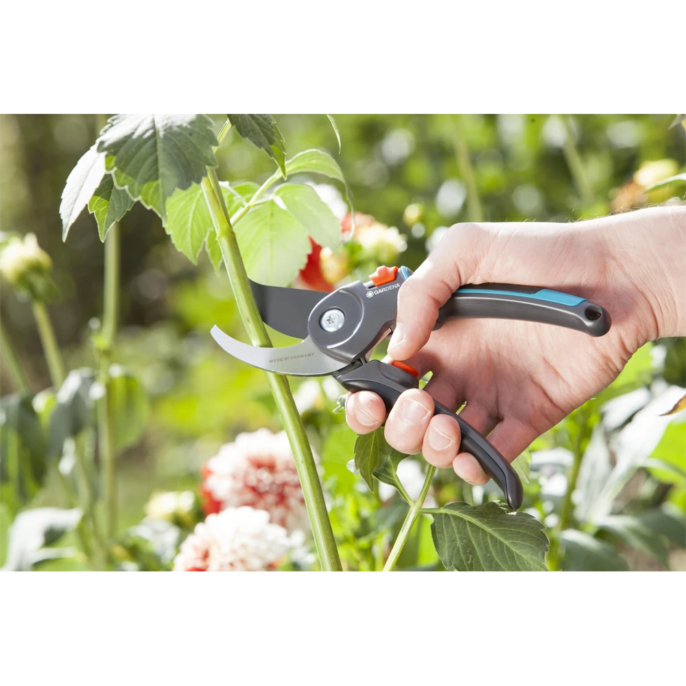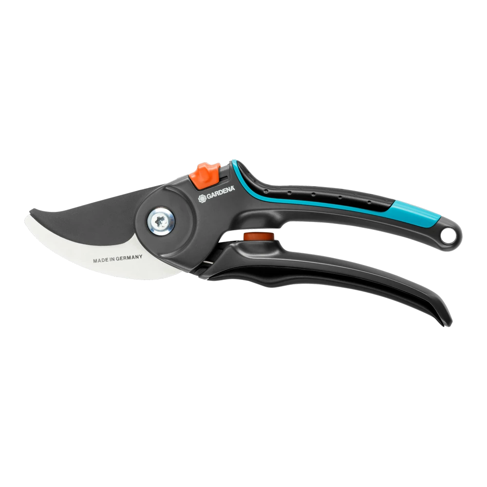 De Gardena snoeischaar B/M is geschikt voor het comfortabel knippen van sterke en/of dikke takken en vers hout. Met deze schaar, met niet-klevend, gecoat bovenmes en ondermes van roestvrij staal, behaalt u de beste snoeiresultaten. De ergonomisch gevormde handgrepen met ingebedde zachte delen zorgen voor optimaal comfort en de nodige houvast. De veer is in de schaar geïntegreerd, waardoor deze niet verloren kan gaan en bovendien beschermd is tegen vuil. Verder heeft de snoeischaar een sapgoot en een draadsnijder. Dankzij de met één hand te bedienen veiligheidssluiting, kan de schaar gemakkelijk worden gesloten en veilig worden opgeborgen. De Bypass-tuinschaar knipt takken met een doorsnede van maximaal 24 mm.