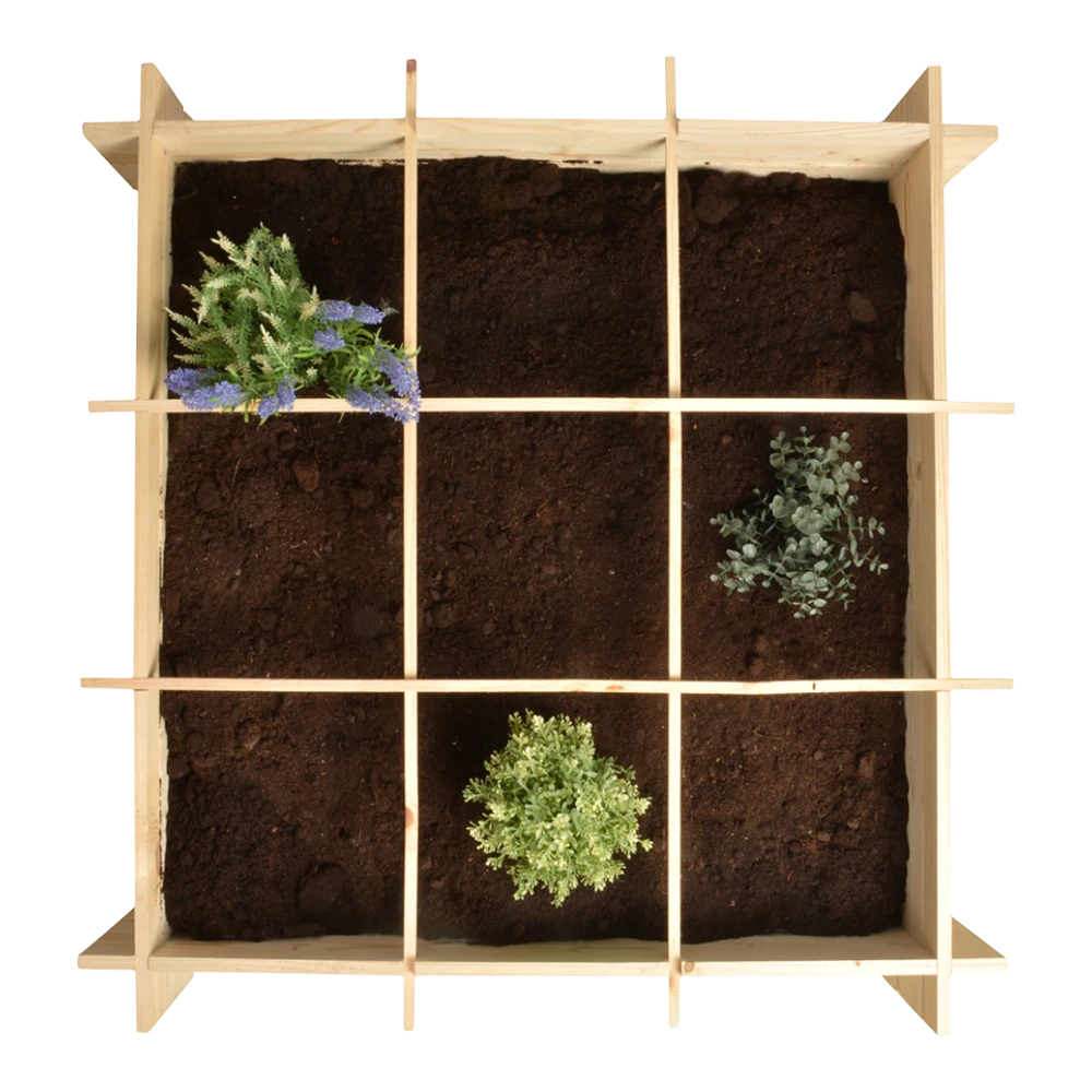 Creëer snel en eenvoudig een compacte moestuin. Met de meegeleverde scheidingslatten ontstaan 9 vakken, die individueel gevuld kunnen worden (denk hierbij aan keukenkruiden, tomaten-, courgetteplanten etc.). Het inbegrepen worteldoek zorgt ervoor dat de grond in de vierkante meter tuin blijft, en bovendien onkruidvrij. Dus ideaal voor stadstuinen en balkons.