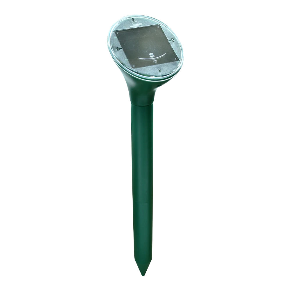 Solar mollenverjager. Op deze manier verjaag je de mol op een vriendelijk manier. Verjaagt mollen uit een gebied tot maximaal 650 m². Zend geluiden en trillingen uit die door mollen als een gevaarsignaal herkend worden. Hierdoor blijven de mollen uit de buurt. Veelzijdig te gebruiken in bijvoorbeeld tuinen, parken, golfterreinen enz. Met zonnepaneel die de oplaadbare batterijen oplaad. Batterijen zijn niet meegeleverd. Veilig voor mens en huisdier. Waterdicht dus het hele jaar door te gebruiken en in de tuin te laten.