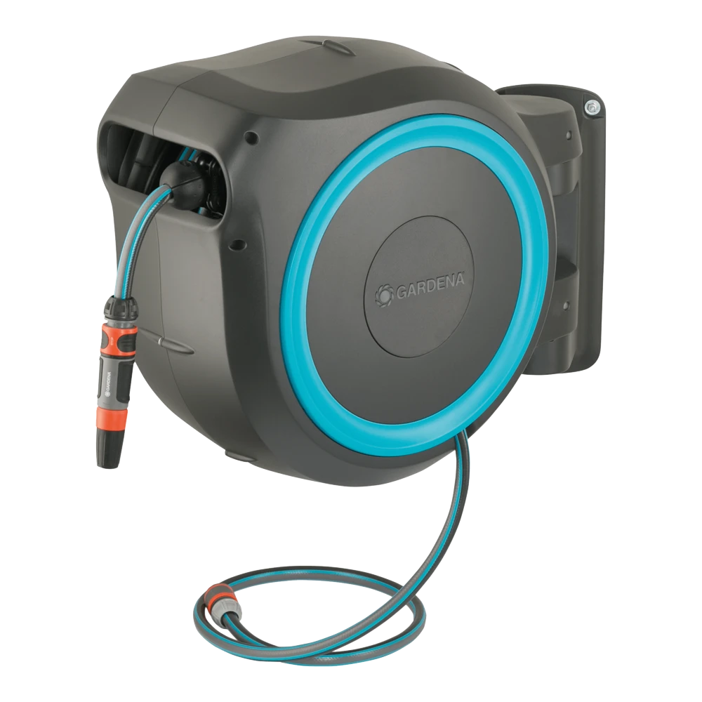 Tuinieren is handiger en gemakkelijker dan ooit met de wandslangenbox RollUp S. Deze helpt uw tuin netjes en opgeruimd te houden en voorkomt hinderlijk struikelgevaar als gevolg van een rondslingerende slang. De praktische slangopslag is eenvoudig aan de muur van uw huis te bevestigen en wordt met een flexibele aansluitslang aangesloten op de kraan. Dankzij de stevige muurbeugel kan de slangenbox meer dan 180 graden worden gedraaid, zodat u elke hoek van uw tuin moeiteloos kunt bereiken. Voor direct gebruik kunt u de tuinslang eenvoudig verlengen tot een lengte van maximaal 15 meter. De tuinslang wordt automatisch in heel korte intervallen vergrendeld zodra u stopt, wat betekent dat de slang eenvoudig en gemakkelijk te hanteren is. Door lichtjes aan het uiteinde van de slang te trekken, wordt de vergrendeling ontgrendeld en een ingebouwde stalen veer met innovatieve RollControl-technologie zorgt voor soepel en gecontroleerd oprollen. De RollControl beschermt de slangenbox en de omgeving tegen schade als gevolg van het te snel inrollen. Om knikken of knopen in de slang te voorkomen, heeft de box een geïntegreerde slanggeleider. Dankzij de slang- en kraanaansluitingen van het Original GARDENA System kunt u eenvoudig en flexibel een verlengstuk of ander compatibel GARDENA element op de slang aansluiten. U hebt altijd uw GARDENA slangopzetstukken bij de hand. Ze kunnen onder de muurbeugel worden bevestigd en daar worden opgeborgen om ruimte te besparen. De GARDENA wandslangenbox is UV- en vorstbestendig en kan het hele jaar door probleemloos aan de muur van het huis blijven bevestigd. Het hoogwaardige materiaal biedt u een lange levensduur en gebruiksgemak zonder onderhoud. Bovendien kan de box niet worden gestolen dankzij de antidiefstalbeveiliging en kan de box alleen door u van de muur worden verwijderd. Samen met de wandslangenbox ontvangt u een muurbeugel, een flexibele aansluitslang, alle benodigde Original GARDENA System en montageonderdelen en een mondstuk met twee verschillende sproeiopties. Bewatering die altijd gebruiksklaar is , dankzij de GARDENA wandslangenbox RollUp S.